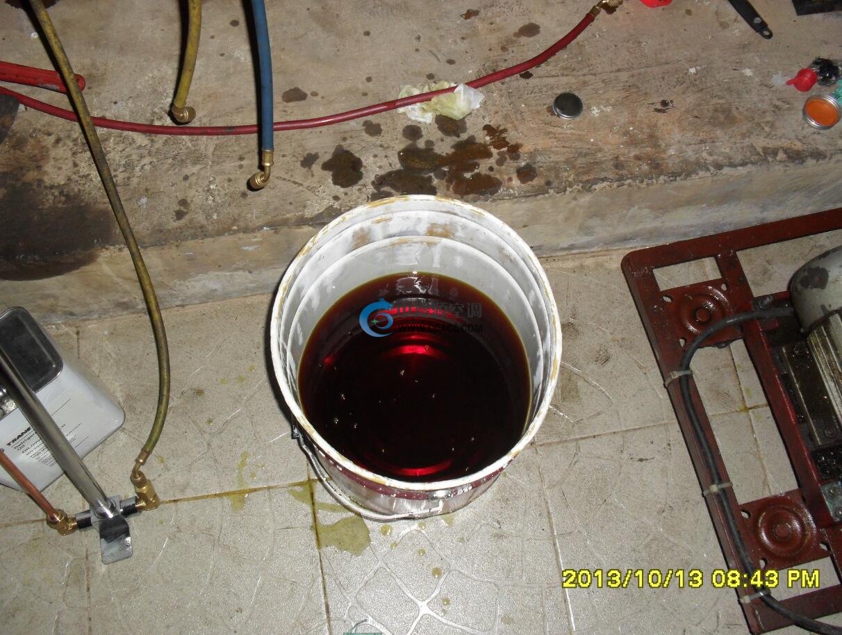 3)、由于空調(diào)外界工作環(huán)境的影響,機(jī)組經(jīng)常在較惡劣的環(huán)境下工作,就會造成壓縮機(jī)油的碳化和乳化,從而使系統(tǒng)積碳、腐蝕、堵塞、潤滑性能下降,使整機(jī)性能降低甚至影響到機(jī)組的使用壽命,